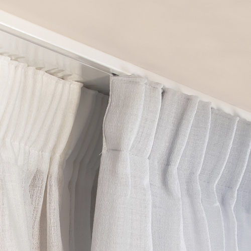 Elegante binario decorativo a doppio canale piatto su cui montare il tendaggio leggero e la tenda pesante per creare la luce giusta tenendo conto delle necessità del momento.